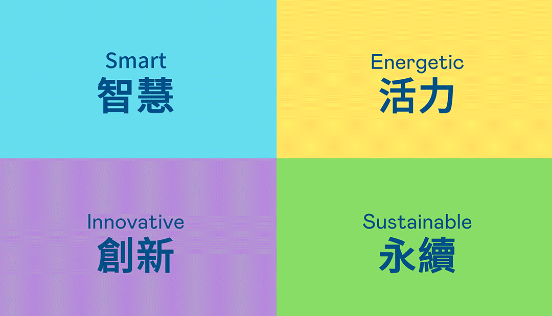 从稳重、信赖的六合联盟蓝开创新色彩,注入象征智慧蓝、活力黄、创新紫、永续绿的品牌色及动态多变的几何图形,呼应不设限的「Possibilities」精神,代表多元的专业技术及领域,在碰撞中相互触动、融合、延伸,持续激荡出更多新的可能性。